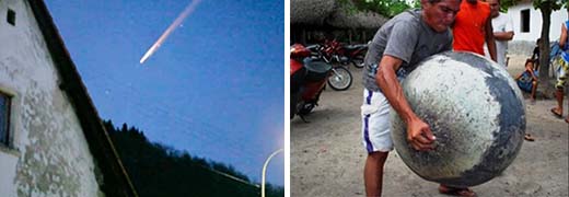 En 2012, los habitantes del norte de Brasil se sorprendieron cuando una esfera metálica cayó del cielo para estrellarse en Riacho dos Poços, en el estado brasileño de Maranhão, destruyendo un anacardo en el proceso. La persona que lo descubrió por primera vez dijo que quedo shokeado después de que un fuerte estruendo reverberó en el cielo. El salió a ver que lo causó. Lo que encontró fue un objeto extraño, de otro mundo, en una zanja aún caliente al tacto, y descrito como perfectamente esférico y de aproximadamente 1 metro de diámetro y un peso de 50 kilogramos. Cuando llegaron otros lugareños y lo desenterraron, descubrieron que la esfera parecía estar hueca, excepto por lo que parecía ser un poco de líquido que flotaba por dentro. La policía militar pronto llegó y retiró la esfera, diciendo que era solo una parte de un satélite caído.