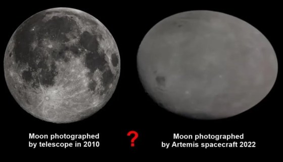 Las imágenes presentadas fueron tomadas el 21 de noviembre de 2022 por la nave espacial Orion una hora antes de su sobrevuelo de la Luna. La nave espacial estaba a una distancia de menos de 7242 km y se movía a una velocidad de 1218 km/h.
