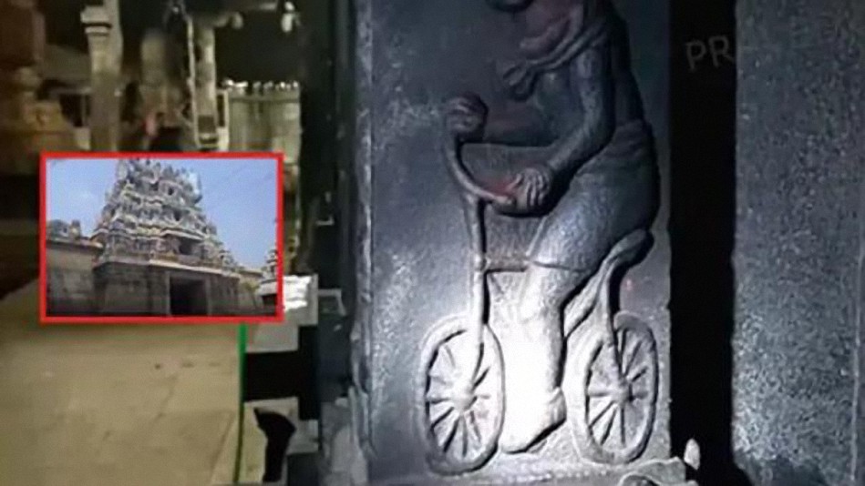 Bicicleta tallada en la pared de un antiguo templo – hace 2000 años